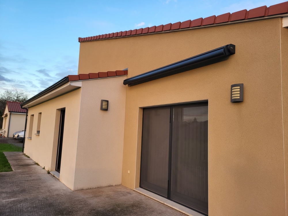 Installation d'un Store Banne à Saint-Laure. Structure entièrement en aluminium laqué. Protection de la toile optimale grâce à son coffre intégrale. Confort d'utilisation par sa motorisation. Fabrication entièrement Made in FRANCE. Installation par les techniciens de SYSTEME BAIE à ORCET.